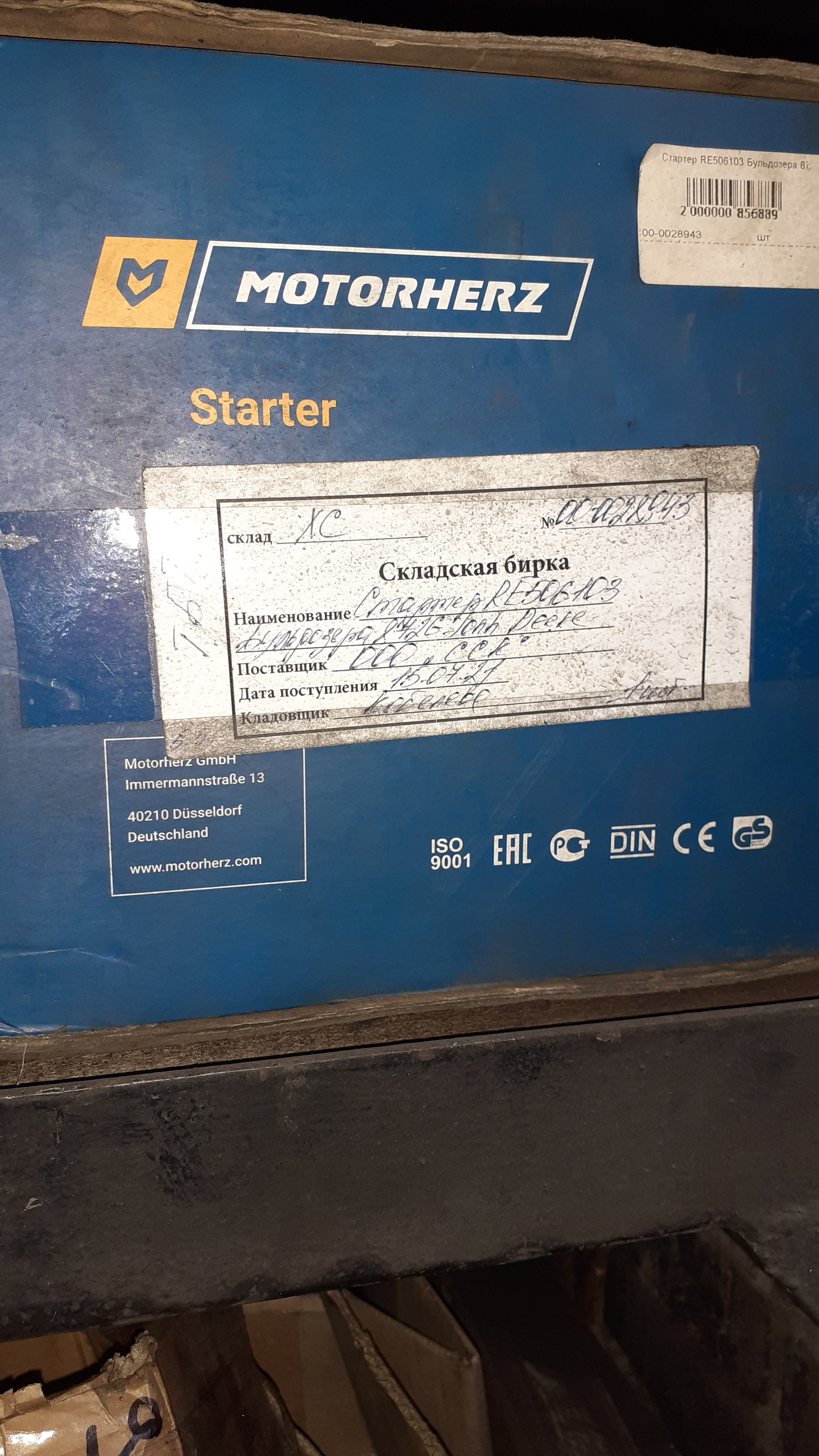 Стартер RE506103 Бульдозера 872G Jonh Deere